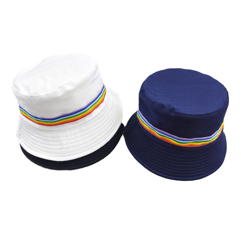 国境を越えた虹のリボンストライプ漁師帽韓国版ファッション両面に盆帽をかぶっている男女屋外日焼け止めの日よけ帽子