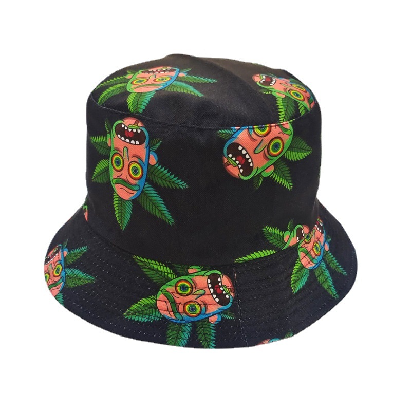 国境を越えたカエデの刺繍漁師帽プリント木の葉韓国版トレンド両面盆帽屋外男女日焼け止め日よけ帽