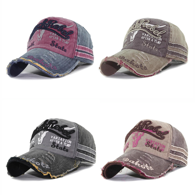 国境を越えて起爆したレトロな古い牛頭野球帽男女水洗いカウボーイ刺繍鴨舌帽破辺日よけ帽子