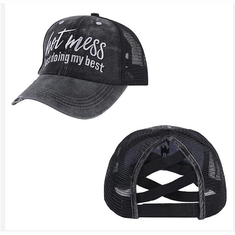 国境を越えた対外貿易馬尾刺繍野球帽男女潮流ファッション鴨舌帽網状透風日焼け止め日よけ帽