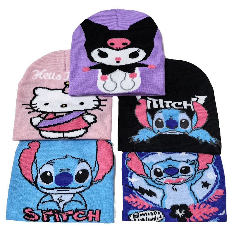 クロスボーダー子供スティッチジャカードニット帽クロミウール帽子サンリオ漫画冬保温フード