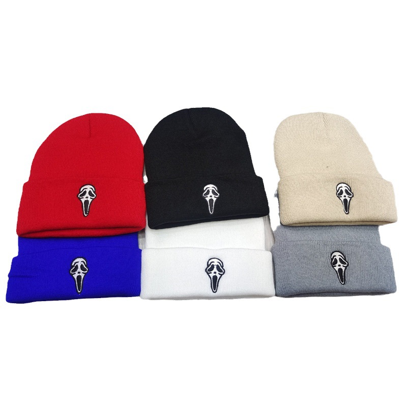 国境を越えた頭蓋鬼顔刺繍ニット帽欧米ハロウィーン個性マスク保温フード男女毛糸帽