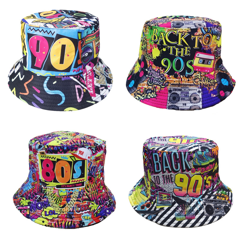 クロスボーダーレトロレトロ80s 90sプリント漁師帽男女潮両面かぶり盆帽アウトドア日焼け止め日よけ帽