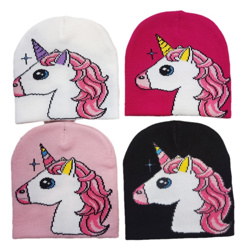 国境を越えた子供ユニコーンジャカードニット帽欧米のかわいいアニメ保温帽フードの子供の毛糸帽子