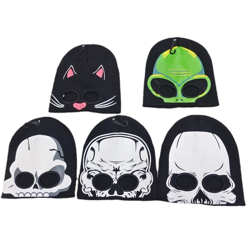 国境を越えたハロウィーン反射スカルニット帽男女夜光マスク宇宙人保温フード毛糸帽
