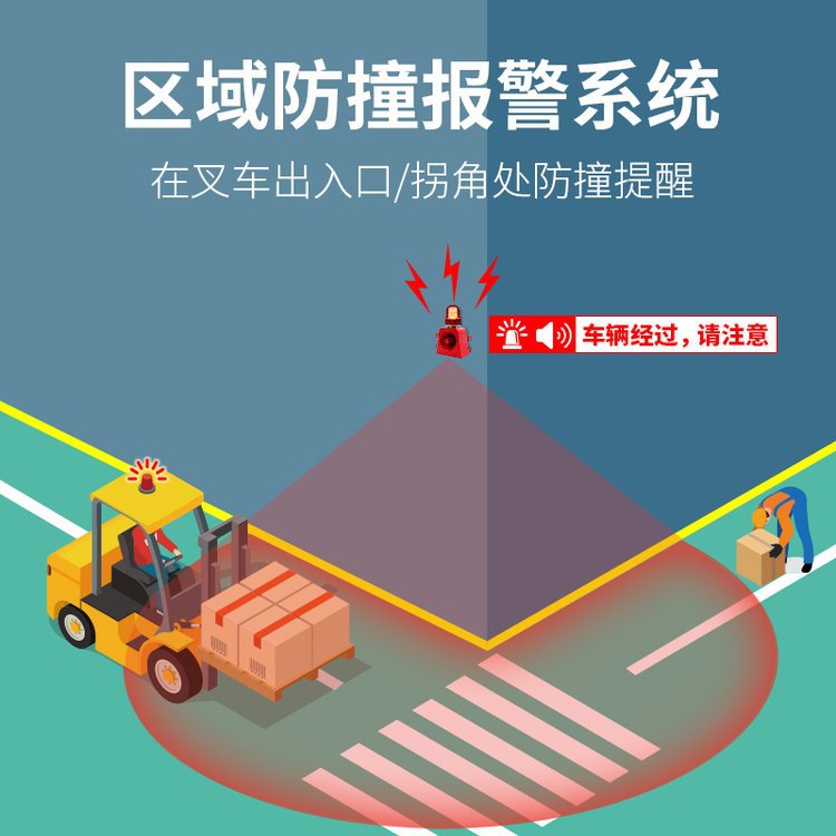 フォークリフト倉庫区域角衝突防止ドア口出入り死角フォークリフト衝突防止システム人車衝突防止警報