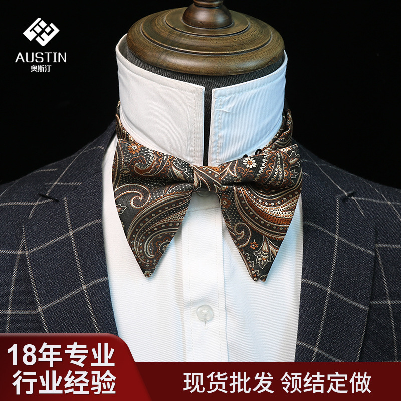 加工カスタム男性1200針ポリエステルの尖った角の蝶ネクタイレジャービジネス新郎大牛角蝶ネクタイカスタム