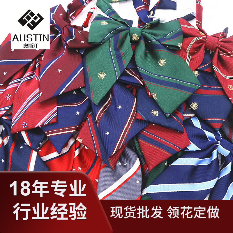 卸売りの長い柄の小さい斜めの角のネクタイの女性の純色の魔方眼の襟の花jkの制服の学院の風の蝶結びの制服の現物