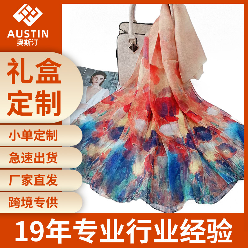 秋冬新作日焼け止めレディースシルクプリントシルクスカーフロングシルクギフトサテンシルクスカーフ
