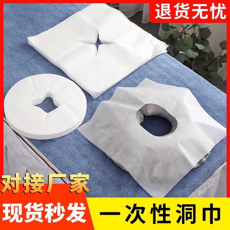 使い捨て穴タオル、厚手卸売価格、不織布純綿、美容室滅菌丸穴U字型正方形枕タオル