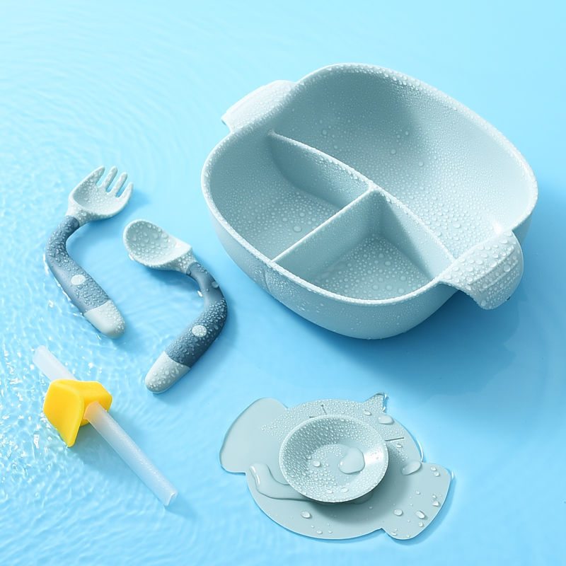 ベビーミールプレート pp 吸盤コンパートメント子供用食器セット赤ちゃんの食べることを学ぶトレーニング補助食品ボウルスプーンフォーク