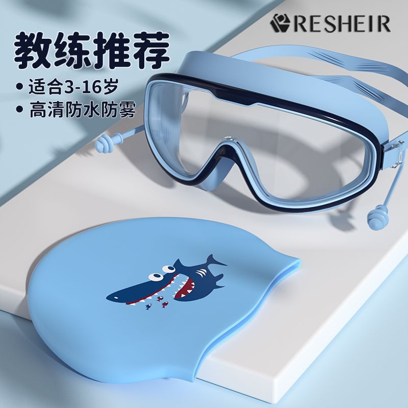 子供用水泳ゴーグル防水防曇高精細大型フレーム男の子と女の子水泳ゴーグルダイビングゴーグルプロフェッショナル水泳キャップセット機器