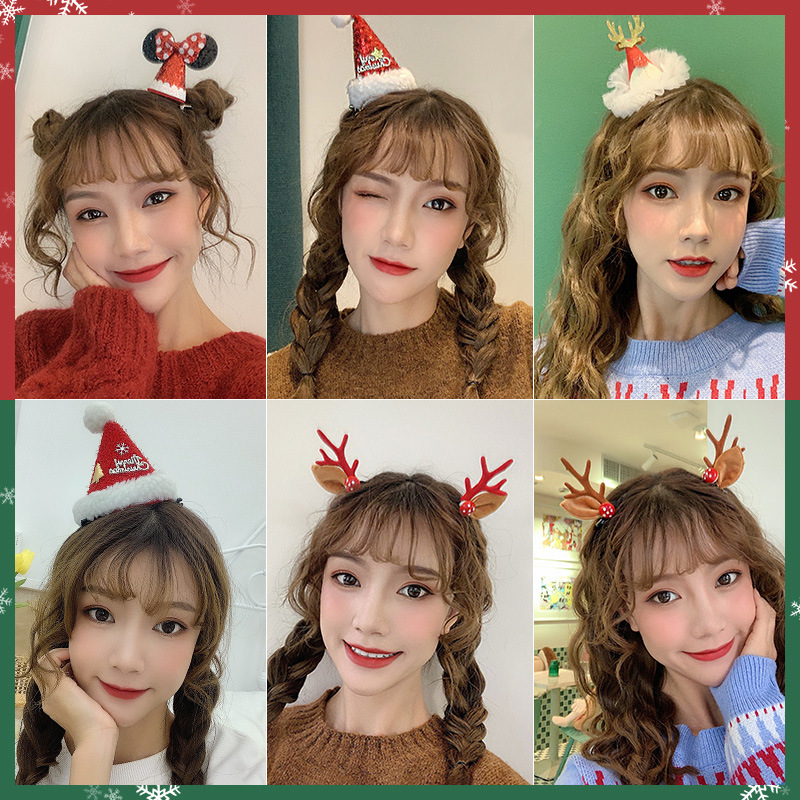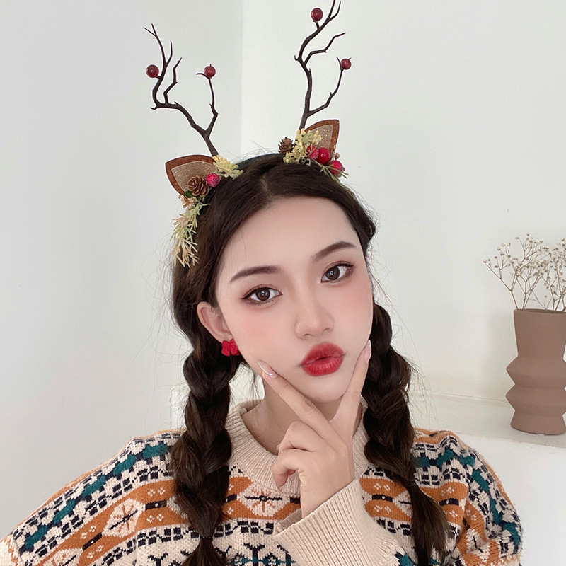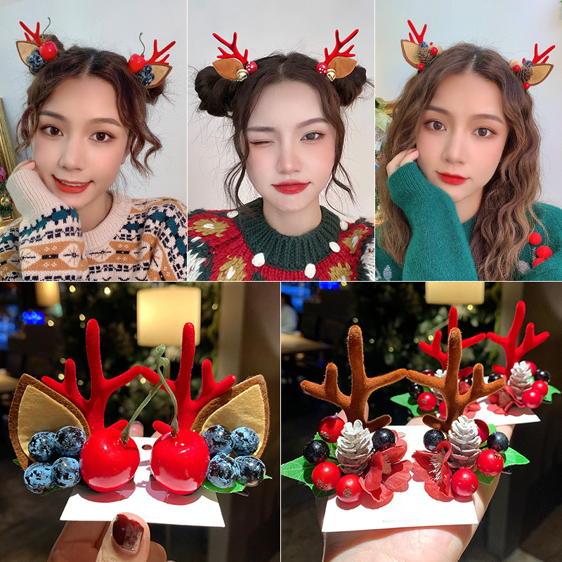 新しいクリスマスの鹿の角のヘアピンの前髪の縁は森を挟みます。
