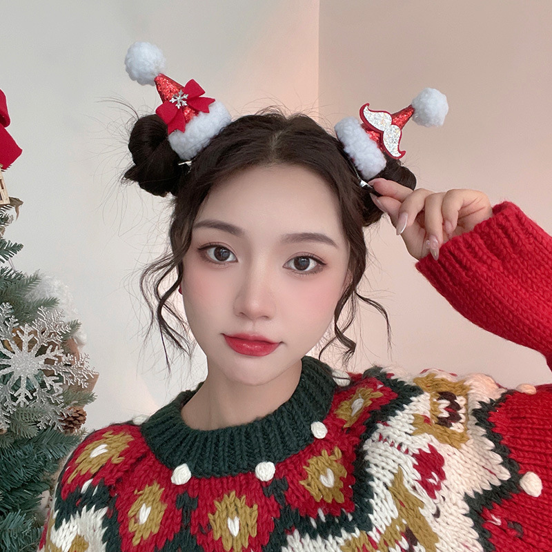 クリスマスの帽子のヘアピンのサイドの前髪クリップのかわいい森系のヘラジカの角のトップクリップのヘアピンの少女の髪飾りの装い