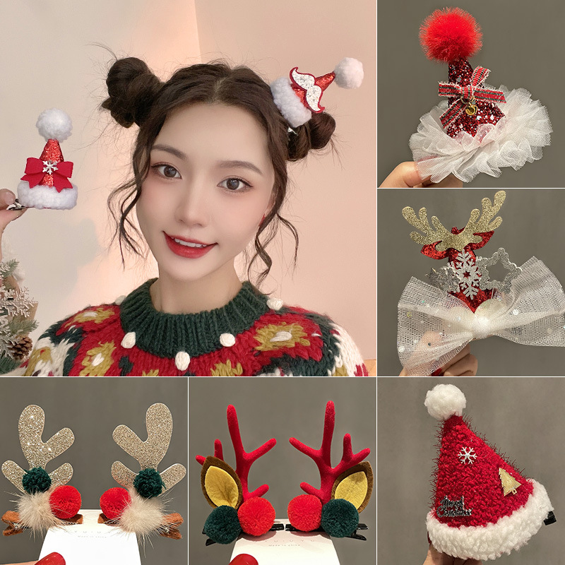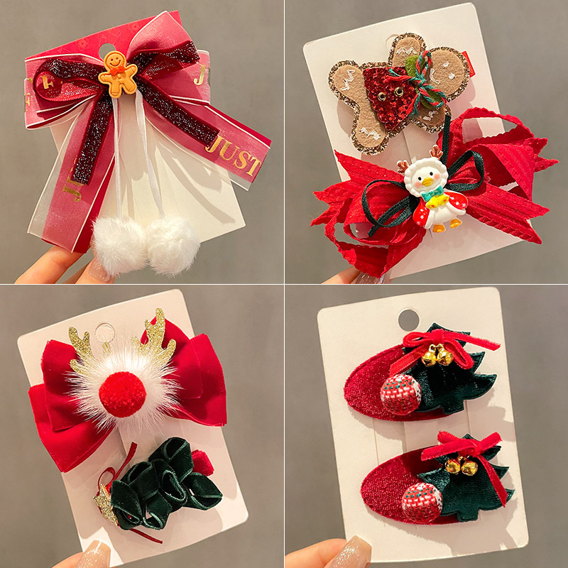 鈴の蝶結びのヘアピンのクリスマスのヘアアクセサリーの子供のヘラジカのヘアピンの女性2024の新型のサイドクリップの大人のアクセサリー