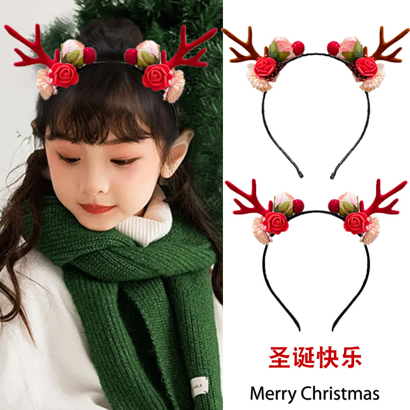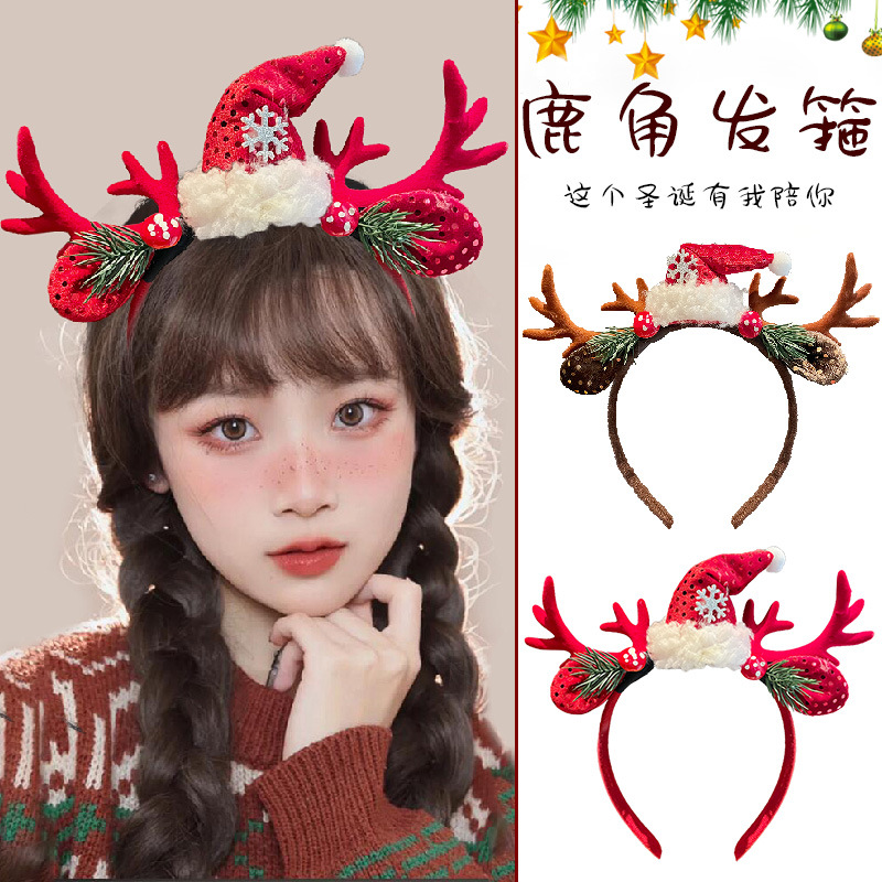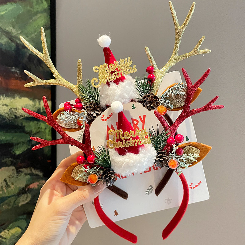 新年の髪飾り森系ヘラジカの髪飾りクリスマス赤い鹿の角の髪飾り