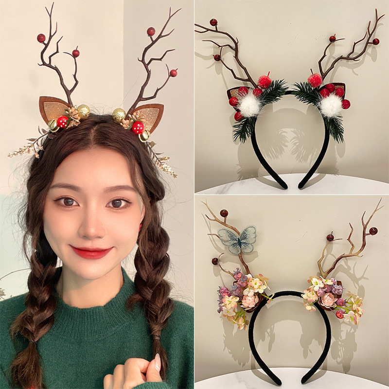 森系大鹿角カチューシャ超仙高级感クリスマスカチューシャパフォーマンスプレゼント大人用コスチューム写真撮影ヘアアクセサリー