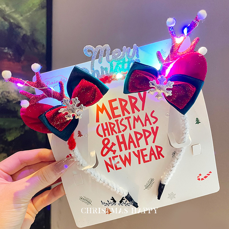 クリスマスの子供のショーの発光の鹿の角のカチューシャの2024の新型の大きい顔は小さい女の子のかわいい写真を撮って贈り物を飾ります。