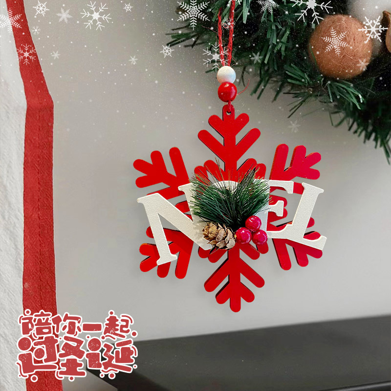 クリスマスツリー装飾品ペンダント木製雪花飾り発光電球雰囲気感吊り飾りクリスマスプレゼント置物