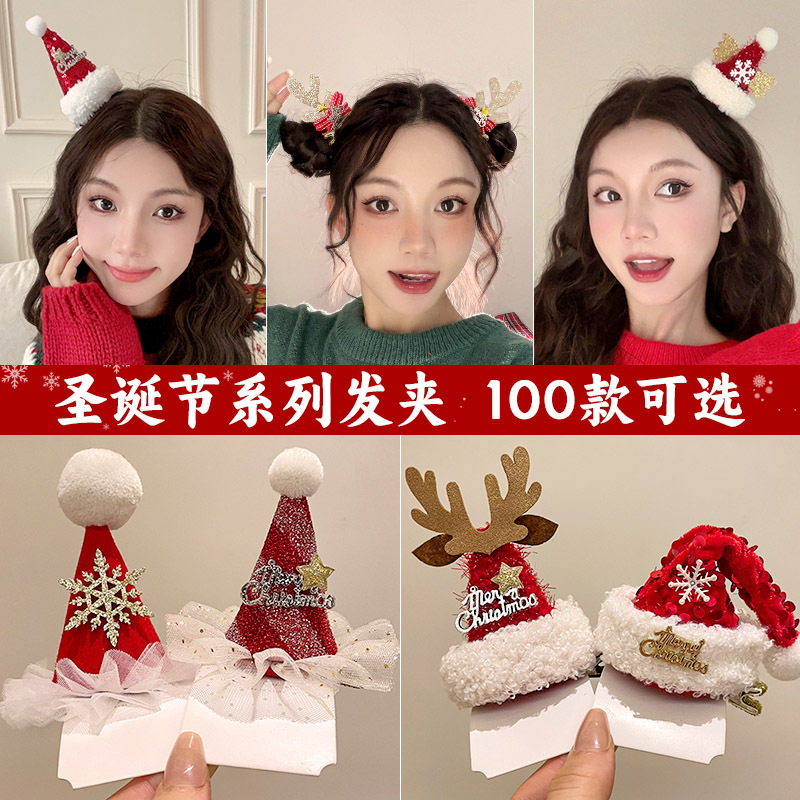 クリスマスの髪飾りの子供の装飾品のヘアピン2024新型の鹿の角のヘアピンの女の子のショーは大人のトップクリップを装います。