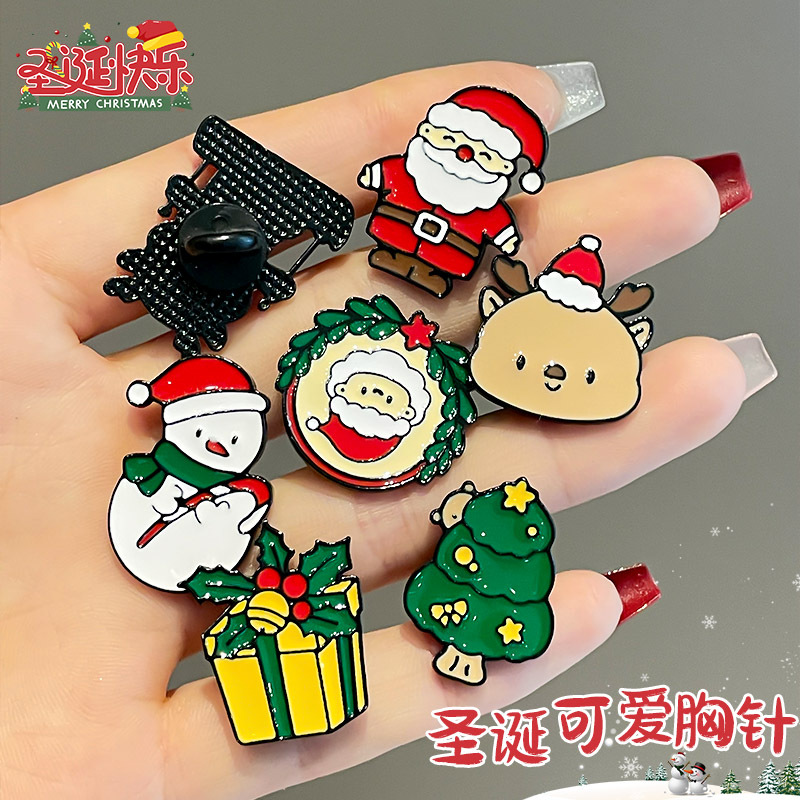 人気漫画クリスマスブローチかわいいヘラジカ金属バッジサンタクロース雪だるま襟バッグピン