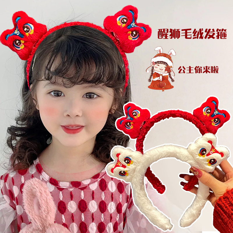 中国風のぬいぐるみが目を覚ますライオンのカチューシャがかわいい子供の新年の赤いカチューシャ幼稚園の髪飾り旧正月の古風な髪飾り