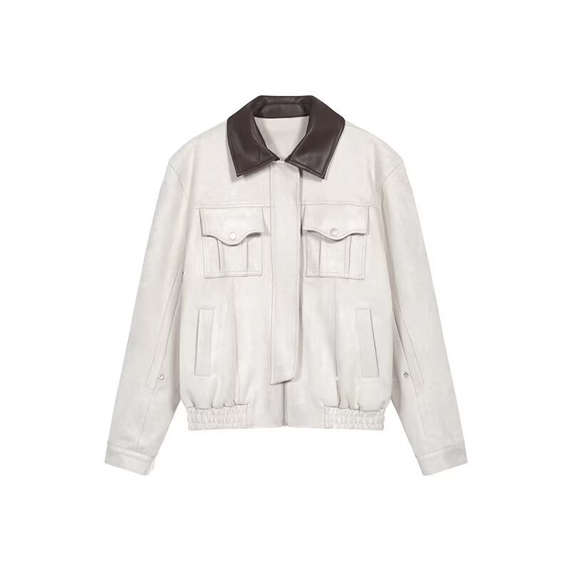 2025新型のレトロなスエードの縫い合わせのコートの男女の春のデトロイトのカップルのカジュアルなジャケットの上着