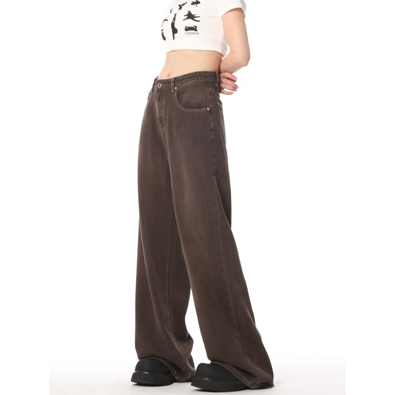 大きいサイズのアメリカンレトロウォッシュ加工サブマシンジーンズ女性用2025新しいルーズスリムカジュアルワイドレッグパンツ