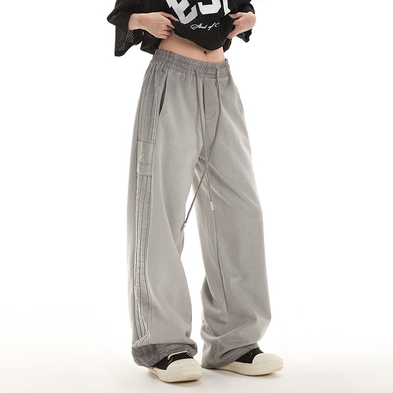 ストライプのスポーツズボンの女性の2024秋のファッションブランドの高い街のアメリカ式の衛のズボンのゆったりしているストレートの感じのカジュアルなズボン