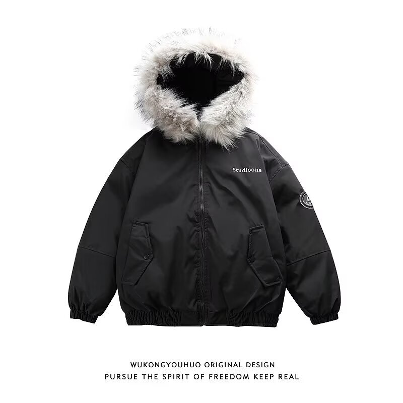 アメリカのレトロな街頭の保温は厚い立襟の短い綿の服の女性の2024冬のデザイン感の小さい大衆のカップルのコートを厚くします。