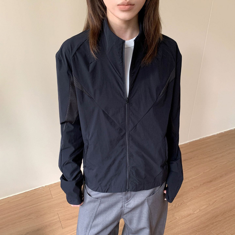 夏アメリカンレトロショルダー日焼け止めジャケット男性と女性のためのスタンドカラー通気性軽量クリーンフィットジャケット日焼け止め服