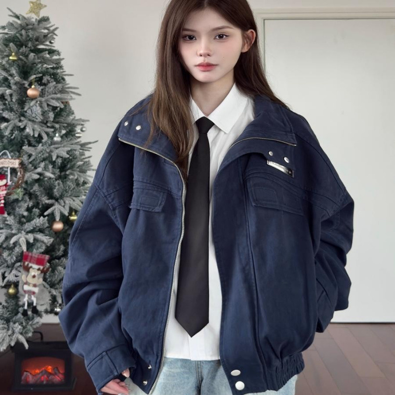 アメリカのレトロな構造のアーチ型のパイロットの女性の野球の服のジャケットboxyのゆったりしているコートの短いタイプのファッションのブランドのデザイン感