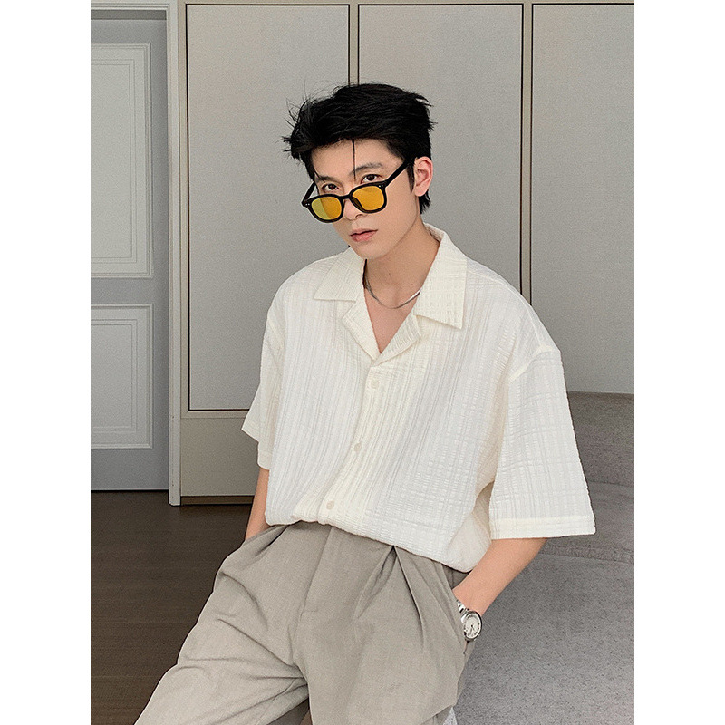ファッションキューバ襟シャツ半袖シャツ男2024夏の新型ゆるいブランドのごろつきがカジュアルな上着