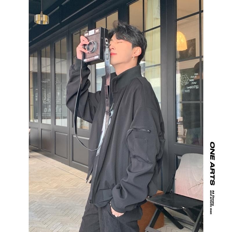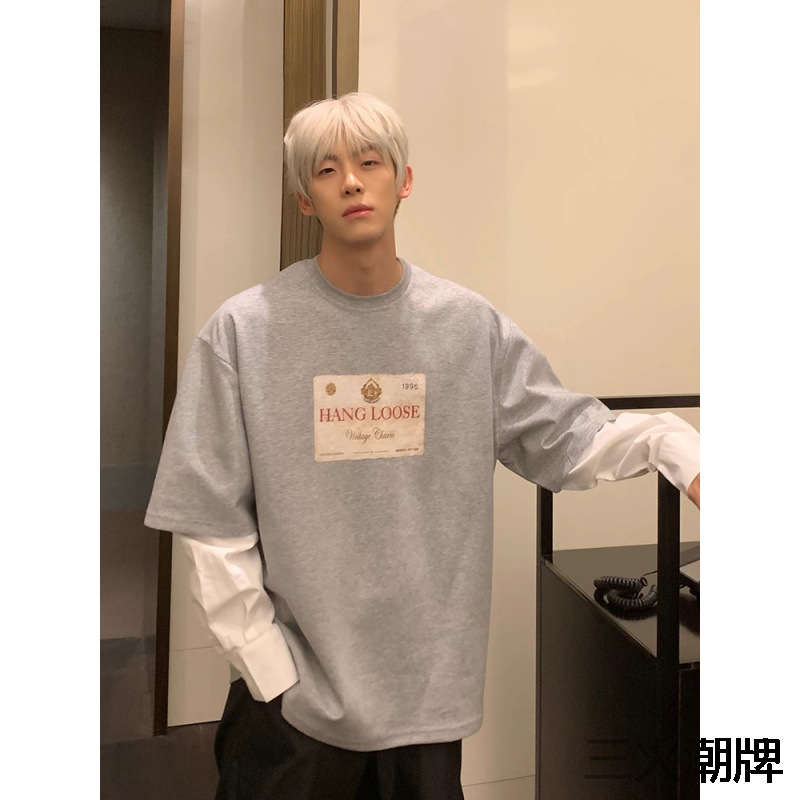 レトロなデザイン感のシンプルな偽の2つのパッチワークの男性の春と秋の新型のゆったりしたファッションのカジュアルなコンビネーションの上着