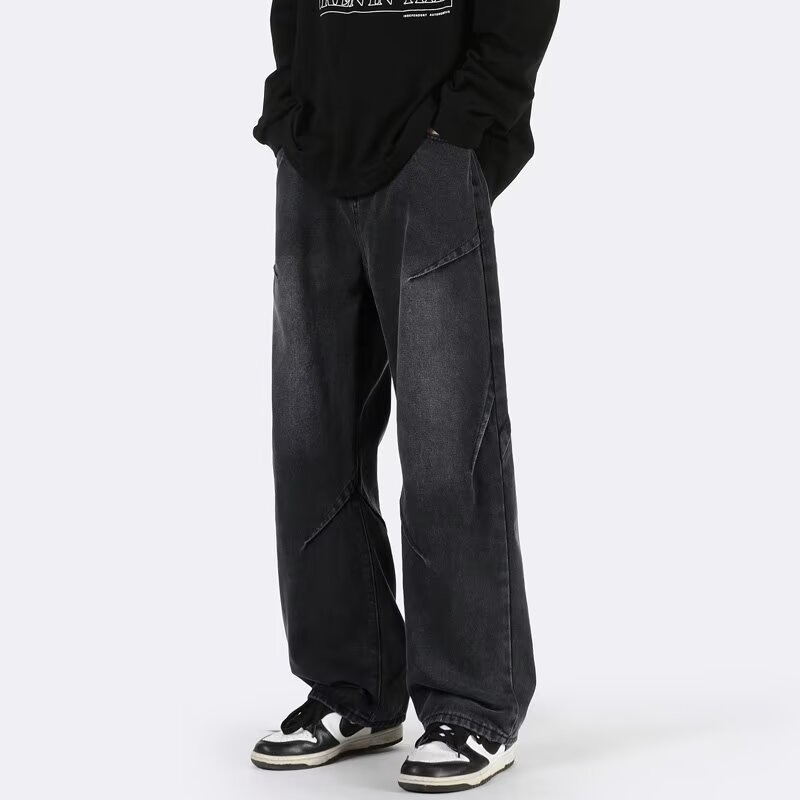 ジーンズ男女春秋アメリカのレトロな水洗いデザイン感ストレートパンツ高街痞帅広脚長ズボン潮