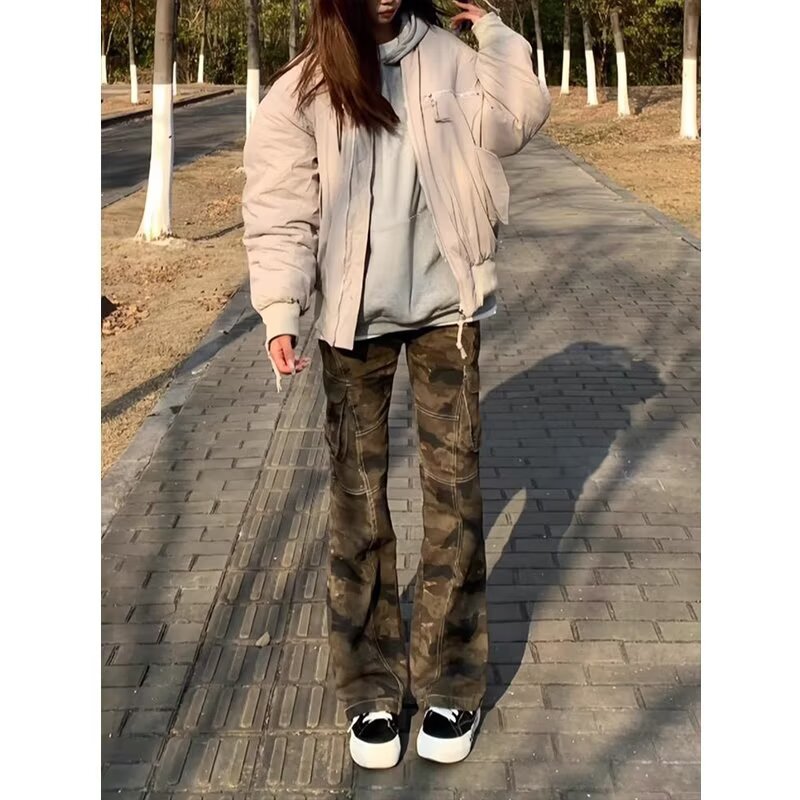秋速乾迷彩ズボン女性アメリカストレートゆるい突撃カジュアルパンツins潮牌シンプルカップルズボン