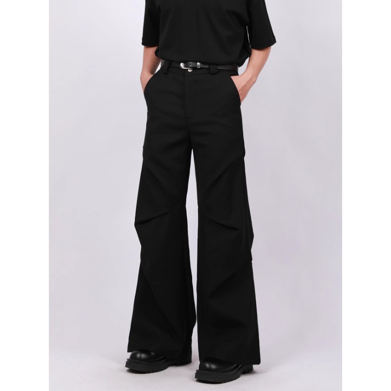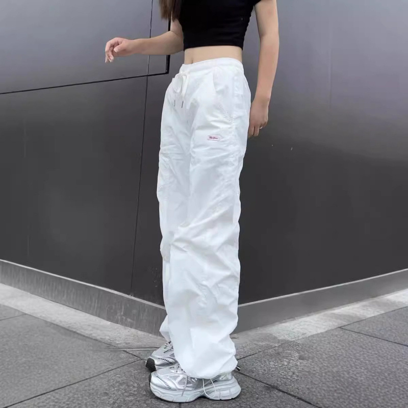 アメリカ式の黒い工装のズボンの女性の秋の新型のハイウエストのカジュアルなゆったりしているのが見えます。