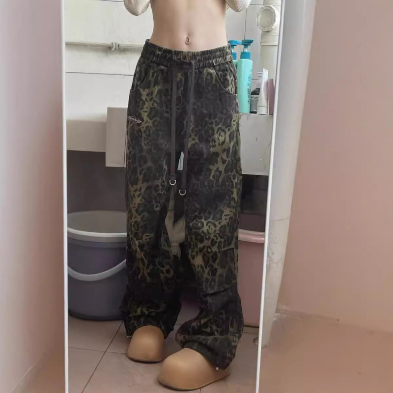 工場直売アメリカ式ファッションvibe豹柄カジュアルパンツの広い足のデザインファッション