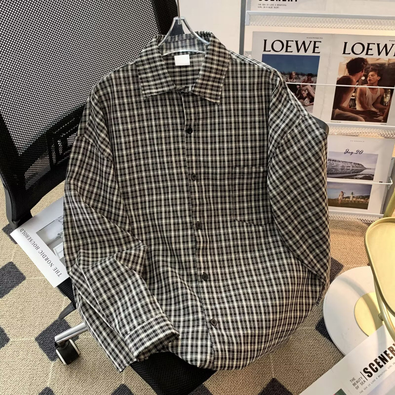 2024文字長袖シャツ日系香港風insゆるいシャツ男子夏のトレンドにカジュアルコートを合わせる