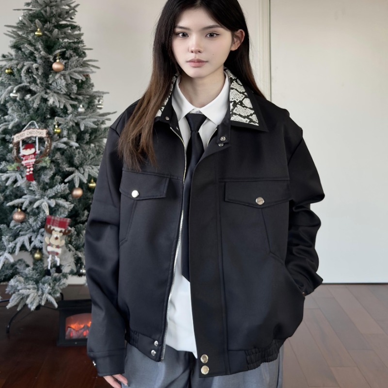 春と秋の蛇年限定白蛇襟ジャケット男女アメリカのレトロカジュアルなカップルの上着のファッション