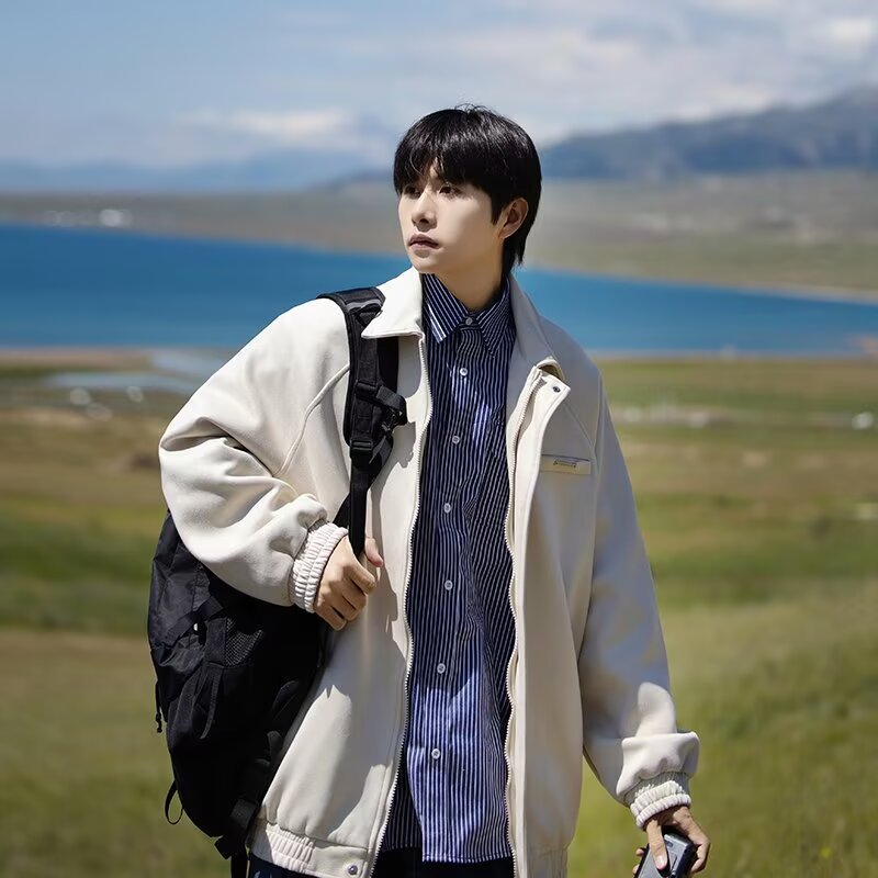 防風襟ジャケット男性タイプ春秋アメリカンレトロ潮牌ins直裾長袖ins単列ボタン水洗い