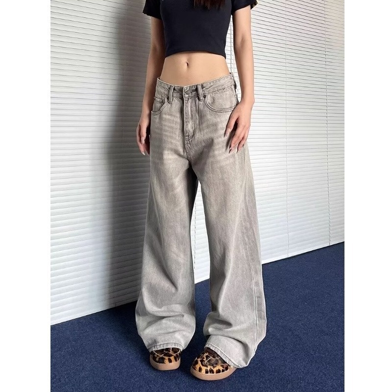 レトロな高街煙灰色ジーンズ女2024春秋デザイン感がゆるい