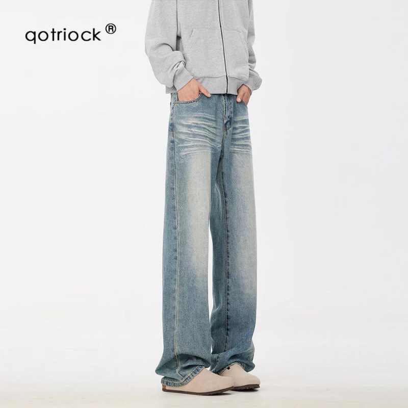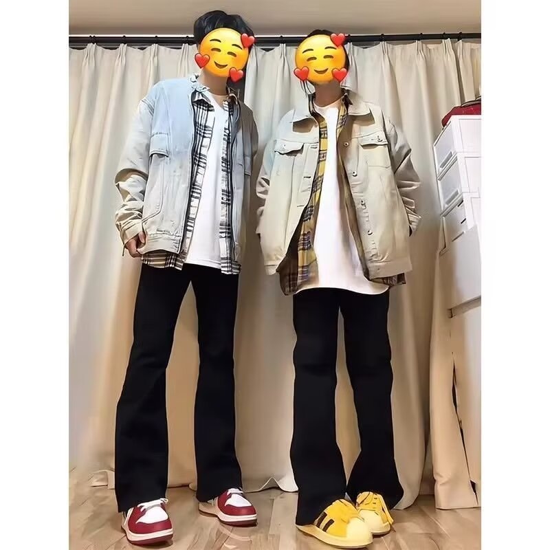 青少年の日常春秋高街のアメリカのレトロなジーパンは洗って古い常規の潮の秋の原宿のファスナーをします。