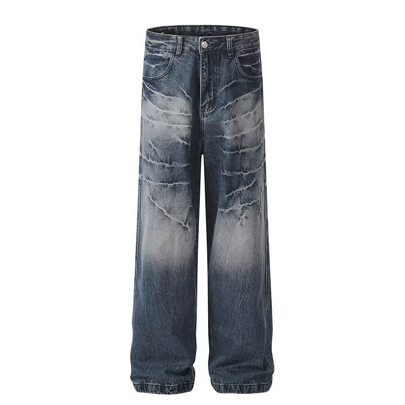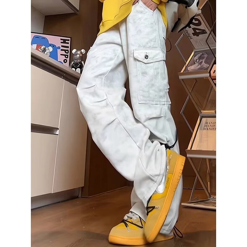 汚い白重工業のズボンの広い足のゆったりしたアメリカ式vibeズボンの男性の秋冬のしわのカジュアルなズボン