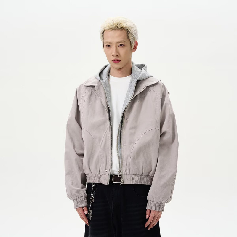 レトロな偽の2つのパッチングフードの工装ジャケット男女2025新型高街デザイン感フードコートins