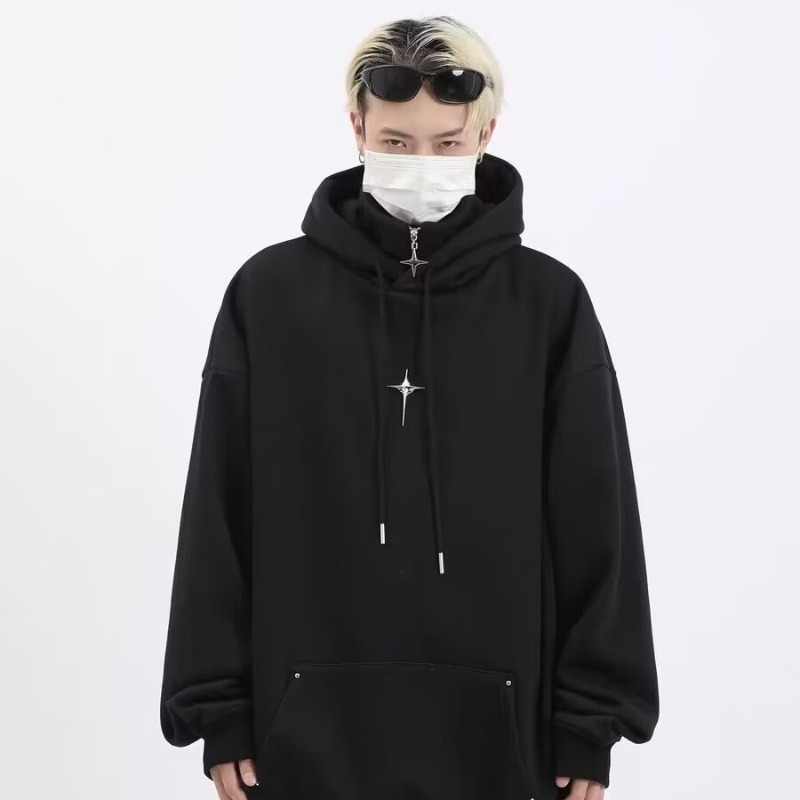 春と秋の新型国潮アメリカのレトロなデザイン感の偽の二重のフード付きの男性と女性のフードコート