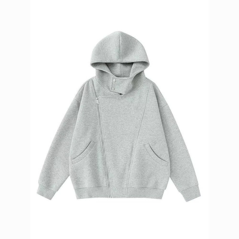 高街アメリカのレトロなデザイン感の不規則なダブルファスナーのカーディガン