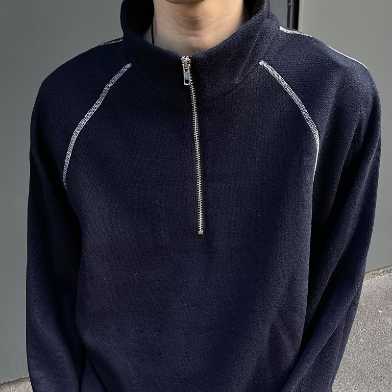 秋の新型筋理立襟半ファスナーの男性の高級ファッションがゆったりしています。