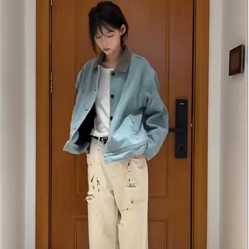 2025新型アメリカレトロ高級感襟付きデニムコート