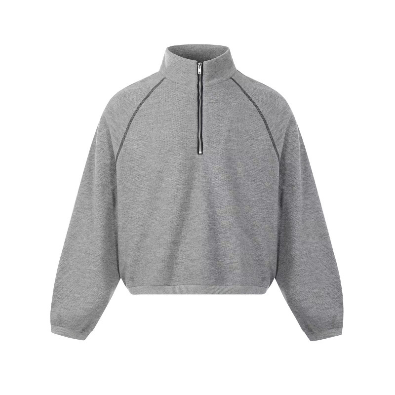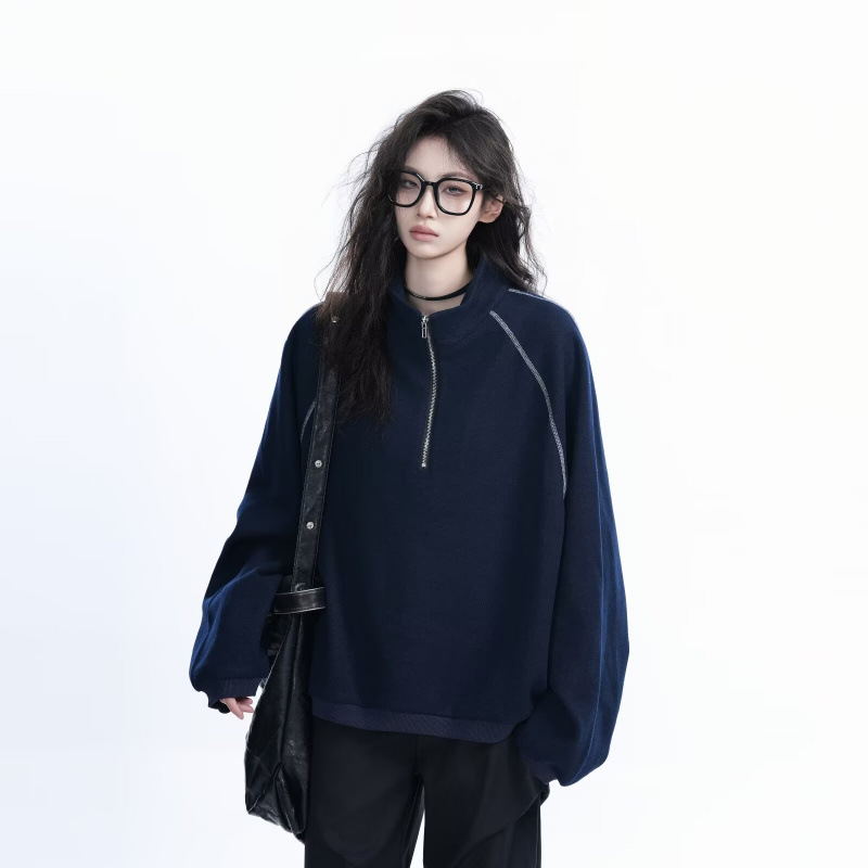 小衆カジュアル長袖衛衣ゆったりとしたシルエットがシンプルで、レトロで高級感のある半高襟ファスナーの上着が流行しています。